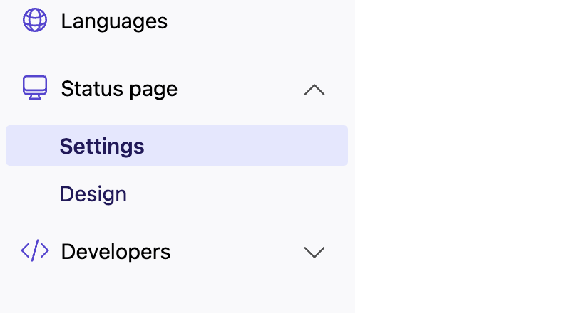 To get started, log in to your StatusPal admin dashboard. From the left sidebar, click on “Status page” and then select “Settings”.