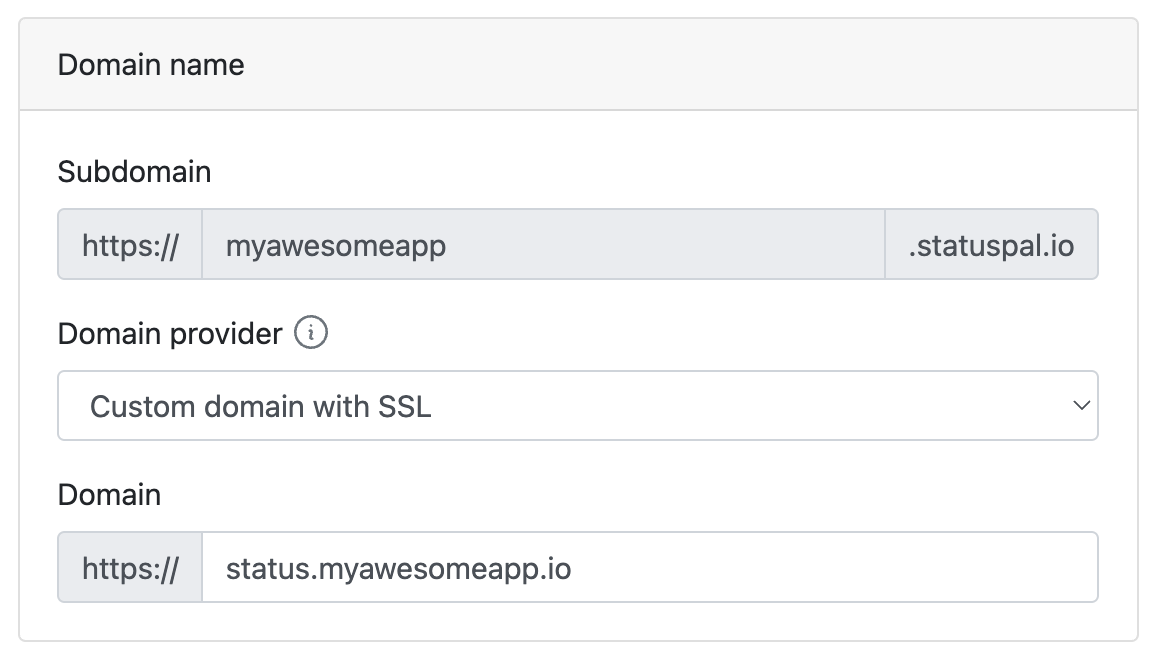 StatusPal allows you to easily configure a custom domain for your status page secured with `HTTPS` endpoint, like `https://status.company.com`. We'll generate and automatically renew the SSL certificate for you!
